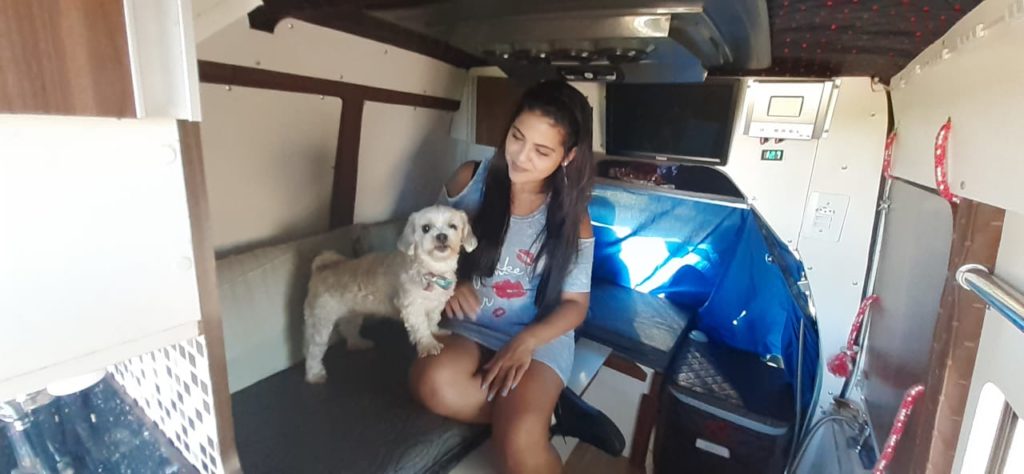 A pequena Amora, a Lhasa Apso de cinco anos, acompanha o casal e logo se adaptou. “A gente tinha até um pouco de receio de viajar com ela no início, mas ela nos surpreendeu. Ela já identificou que a casa dela é a Fiorino. Para ela, cada dia a brincadeira é num ‘quintal’ diferente”, comemora Tamires.
