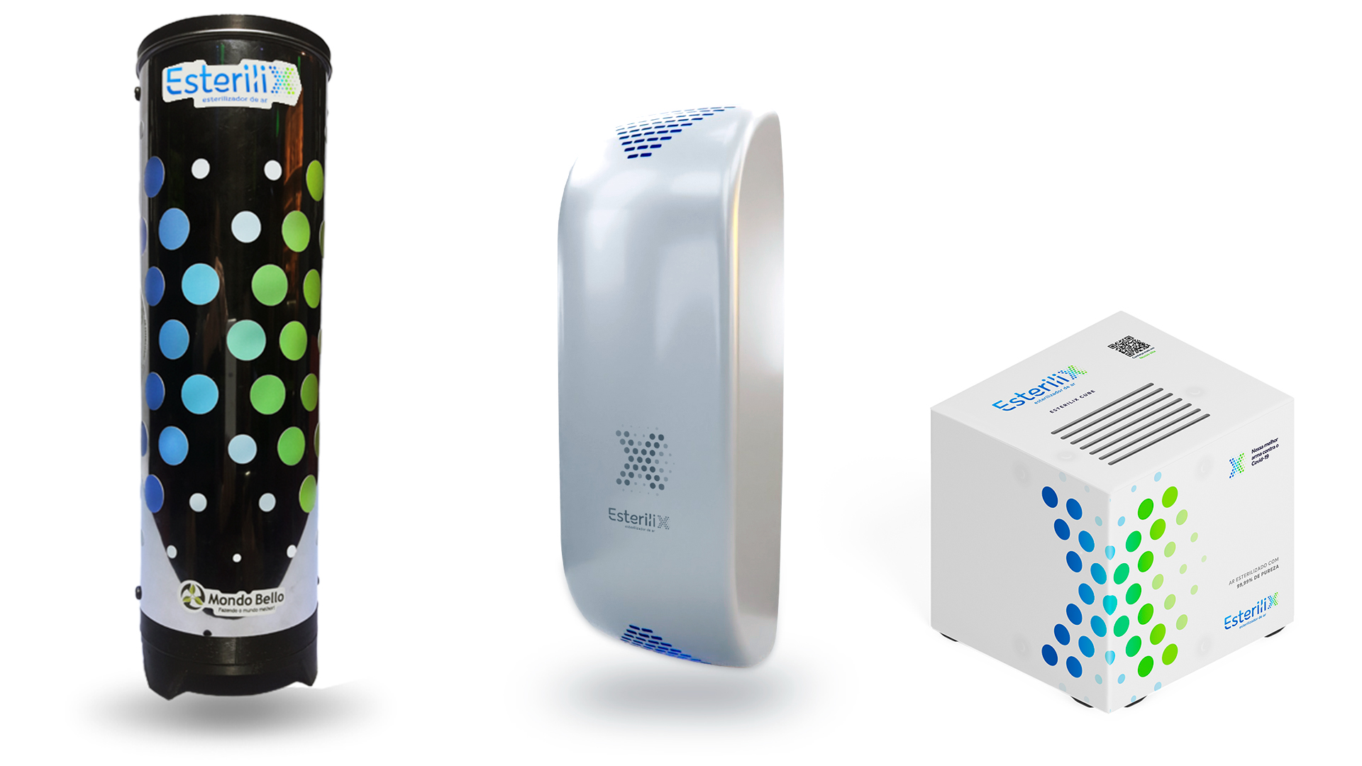 Já o Esterilix Cube é uma versão mais compacta, capaz de esterilizar o ar de uma van ou ambulância de 8m³ em apenas 2 minutos ou de uma sala de 25 m² em até 15 minutos.