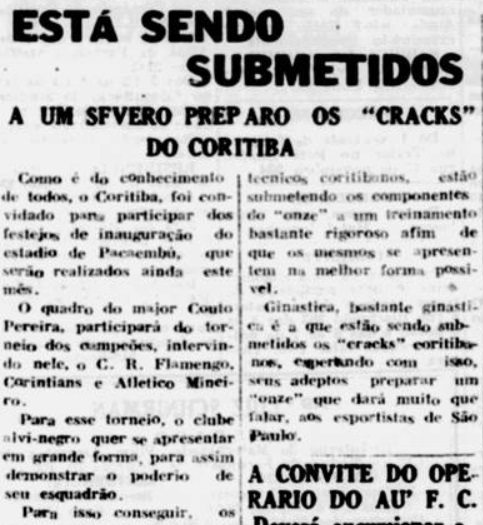 Se os jogos fora do Paraná eram raros, a colaboração entre clubes era mais comum. E por isso o Ferroviário cedeu três jogadores para o Coritiba encarar o Palmeiras no Pacaembu. Foi notícia no Diário da Tarde em 12 de abril.