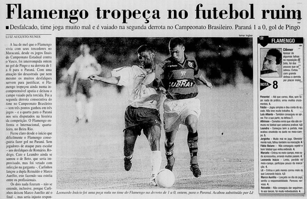 Valdir Espinosa pegou um osso duro de roer no Paraná Clube. O Tricolor perdeu na estreia do Campeonato Brasileiro de 1999 para o Santos ainda com Márcio Araújo como treinador. A segunda partida seria duas semanas depois, e no meio desse caminho houve a troca no comando técnico. Espinosa assumiu e logo na estreia uma vitória marcante sobre o Flamengo no Maracanã por 1×0, gol de Pingo.