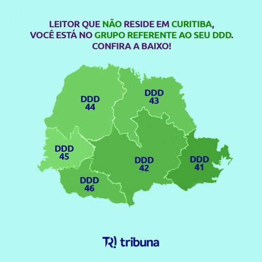 Se você deseja participar dos nossos grupos, basta escolher a sua regional logo abaixo e você receberá diariamente as principais notícias do dia em Curitiba e região.