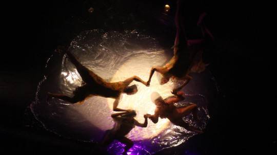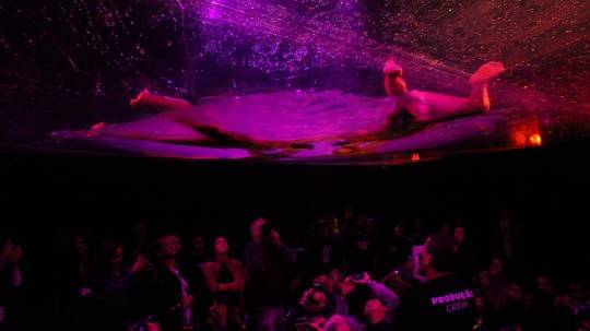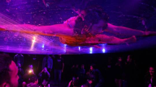 Durante o espetáculo, você fica fechado numa espécie de caixa escura e, aos poucos, é engolido por um universo de luzes, água e fumaça. Embora o espaço seja grande, já que o palco tem 500 metros quadrados e cada canto é explorado, desde as paredes até o teto, você sente que faz parte da estrutura, a começar pela piscina gigante, que fica presa a parte superior.