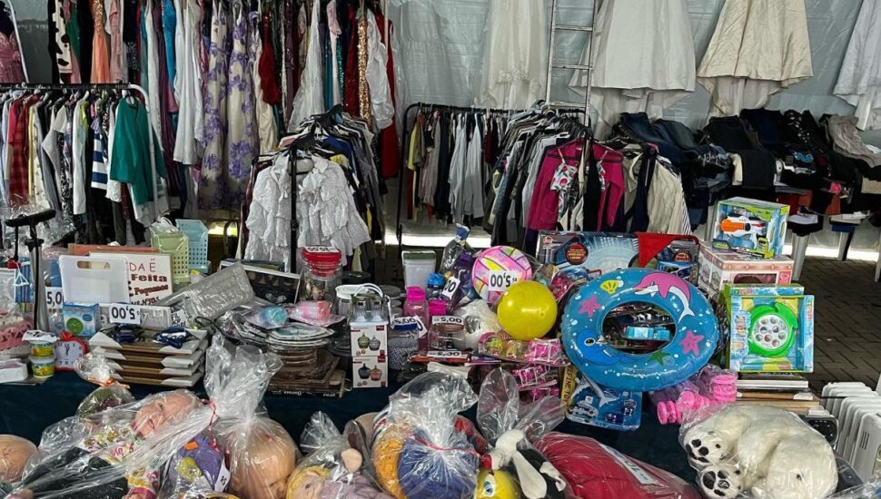 Um bazar solidário no Xaxim, em Curitiba, está oferecendo vários produtos a partir de R$ 3,00 neste sábado (4). São várias bancadas com roupas femininas e masculinas, acessórios e brinquedos que terão a renda revertida para o Instituto Grupo Solidário, que ajuda famílias da capital e região em situação de vulnerabilidade.