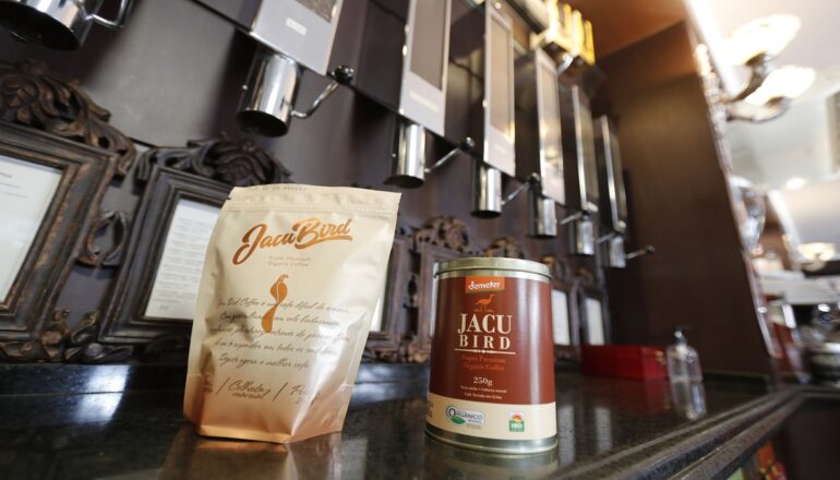 “Eu digo que o café do Jacu não é especial, ele é exótico. Ele tem todo um processo diferenciado, onde o pássaro jacu seleciona os grãos mais vermelhos, mais maduros. Ele come esses grãos e faz todo o processo digestivo dentro dele. Ele defeca e o pessoal da Fazenda Camocim, que é o principal fornecedor do café do Jacu no Brasil, eles coletam esses grãos, fazem a seleção, torram o café e assim tem o café do Jacu”, explica Daniela.