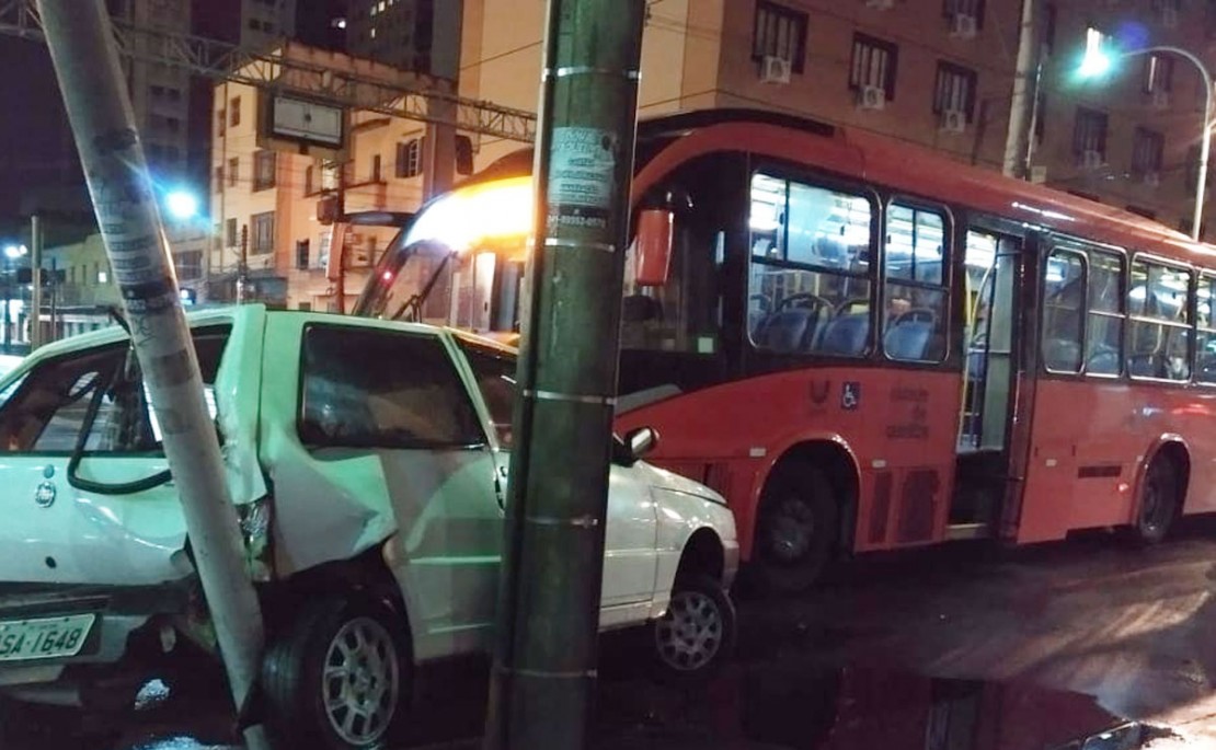 Mais uma colisão envolvendo um biarticulado e um carro de passeio bloqueou o trânsito em Curitiba nesta terça-feira (4). O último acidente, registrado à noite, foi na Rua João Negrão esquina com a Avenida Sete de Setembro, no centro da capital. Por conta do impacto da batida um Fiat Uno foi arrastado pela via e só parou quando atingiu uma placa de trânsito.