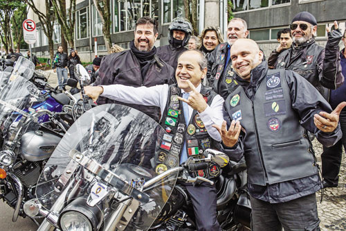 em uma “moto-carreata” até o Centro Cívico, onde foram recebidos pelos chefes do poder executivo estadual e municipal.