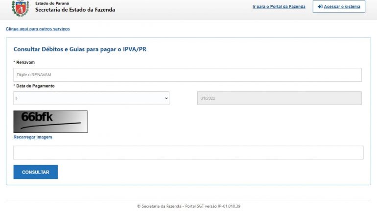 Primeiro é preciso acessar o site do Detran PR ou diretamente o da Secretaria Estadual de Fazenda e é necessário ter em mãos o número do Renavam. Esse número consta no Certificado de Registro e Licenciamento de Veículos (CRLV).