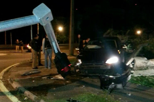 A perseguição seguiu por alguns quilômetros, até o cruzamento da Rua João Rodrigues Pinheiro, onde o bandido que estava ao volante perdeu o controle do automóvel e bateu contra o semáforo. Segundo a polícia, os dois desceram do carro e fugiram em sentidos opostos.