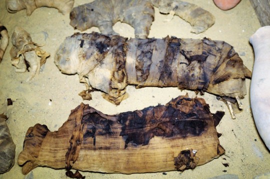 Também foram localizados, segundo o site da revista Galileu, tumbas com escaravelhos que foram embalsamados. Eles estavam em pequenas urnas. O achado também surpreendeu os especialistas locais, que jamais haviam encontrado os insetos mumificados na região.