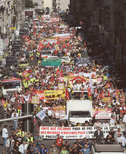 Greves realizadas nesta terça-feira foram responsáveis pela interrupção de alguns serviços de trem e de metrô em Paris, Bordeaux e Lyon, além das aulas nas escolas francesas. Os grevistas protestam contra as medidas de austeridade do governo do presidente Nicolas Sarkozy. Os protestos, segundo o jornal Le Monde, conseguiram o apoio de cinco centrais sindicais francesas. Mesmo assim, não paralisaram o metrô de Paris, o que era um dos objetivos dos grevistas.