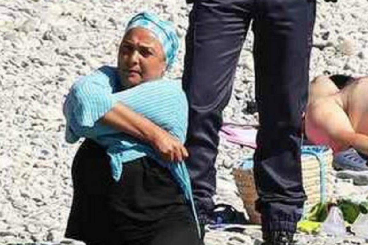 Uma mulher foi obrigada por quatro policiais a tirar parte de suas roupas em uma praia de Nice, na França, por conta da proibição do ‘burkini’ em algumas cidades francesas.