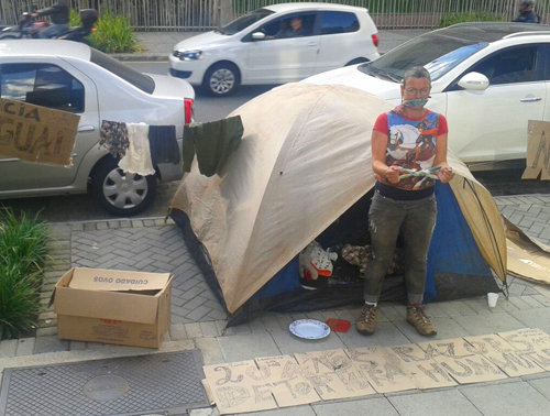 “Não tenho mais nada a perder, daqui eu não saio até que consiga ir falar com meus filhos com a garantia de que vou voltar ao Brasil com vida”, afirmou. Na barraca instalada na Alameda Carlos de Carvalho, Monica tem a companhia de Neymar, um vira-lata. Ela estendeu um varal com algumas roupas e cercou o espaço com papelões com frases que falam em justiça e dor para chamar atenção. A uruguaia contou que costuma morar em um hotel próximo ao Largo da Ordem e que trabalha como artista de rua.