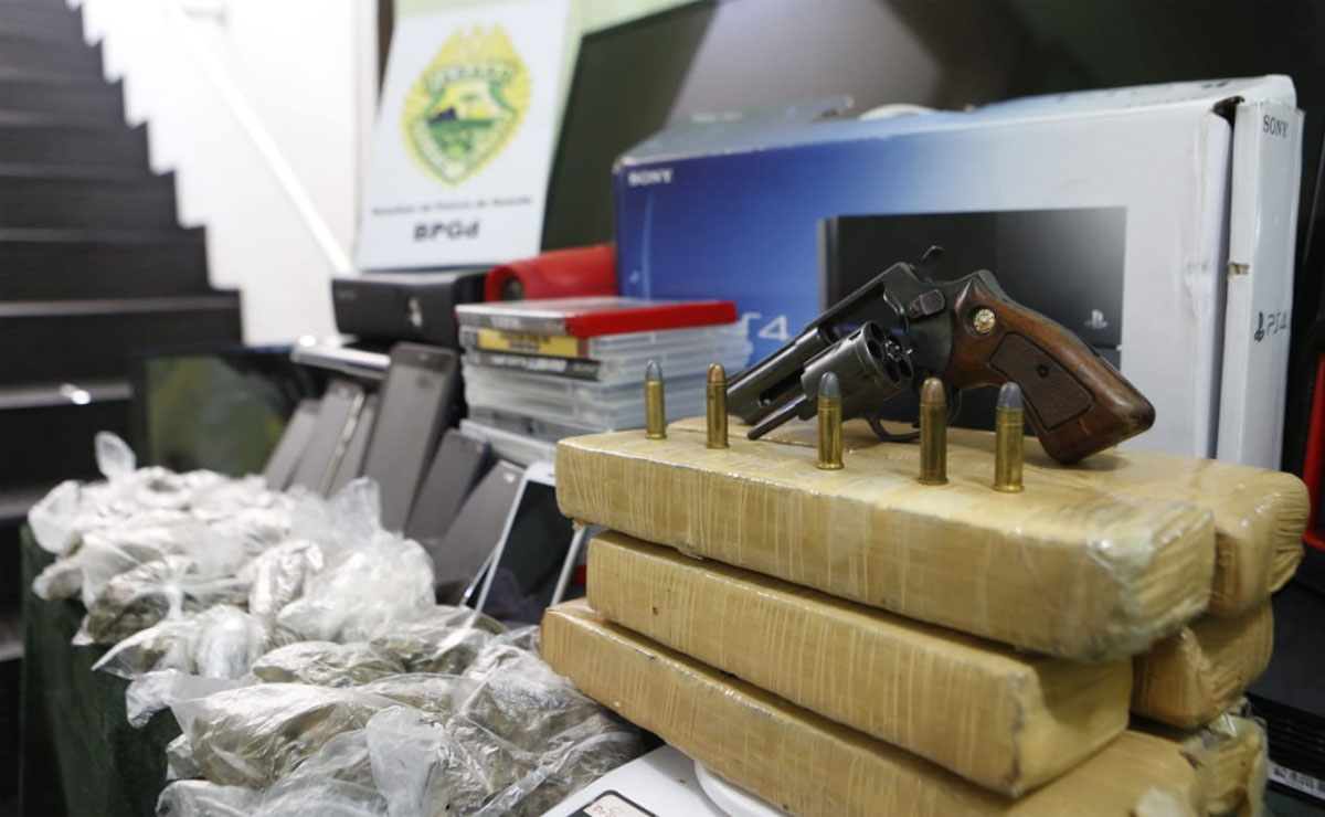 Com o trio, além da maconha e do revólver, que estava com algumas munições, chamou a atenção a quantidade de produtos roubados que foram encontrados. “Muitas televisões, alguns videogames, também tinham muitos notebooks e outros aparelhos como cafeteria, micro-ondas e até fritadeira elétrica”, listou o tenente.