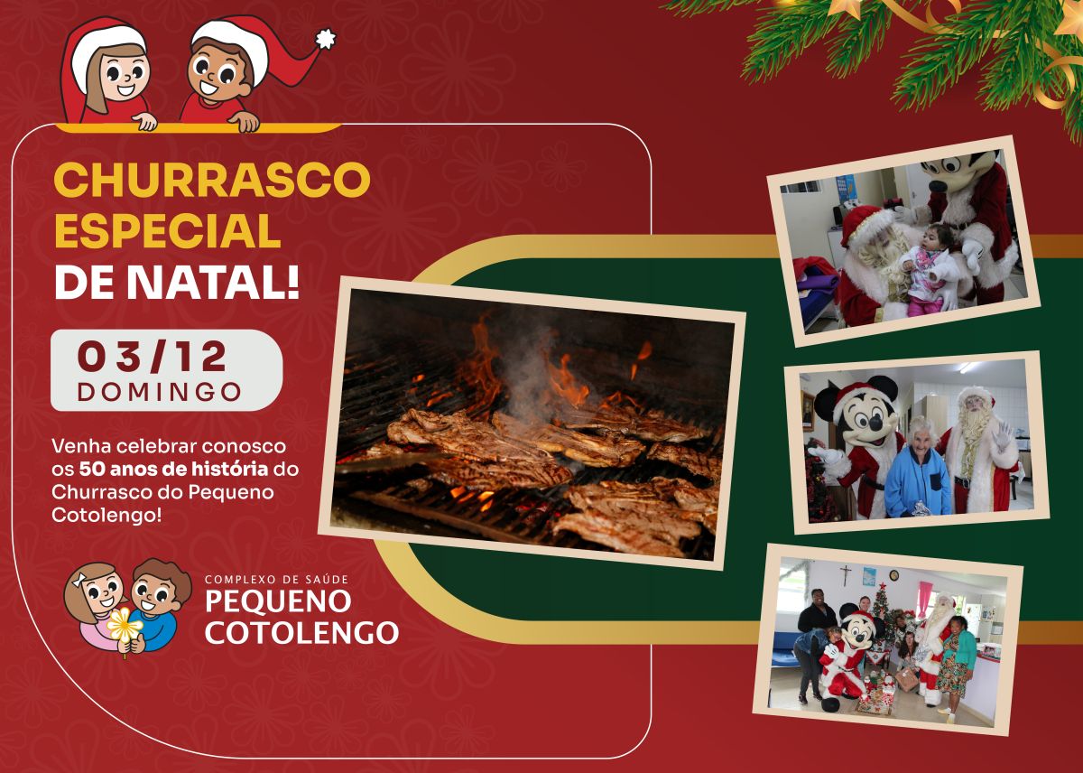 O Churrasco do Complexo de Saúde Pequeno Cotolengo, de Curitiba, completa 50 anos, e para festejar, a organização promove uma grandiosa festa de aniversário em ritmo de Natal. A comemoração começa com a Santa Missa às 10h, e das 11h às 14h o famoso filézão de igreja será servido no Salão ou para retirada no balcão.