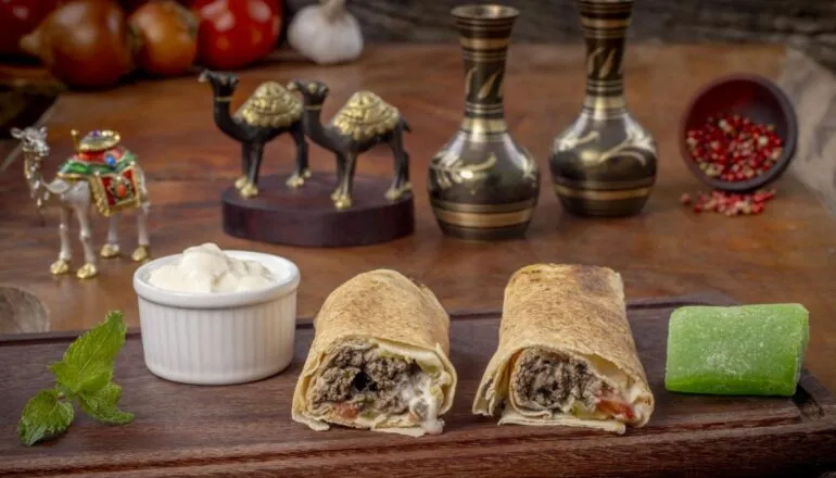 Bolinho de carne bovina, pasta de alho, picles, tomate, servido no pão árabe. Acompanha Rahat (docinho árabe de goma). Acompanha molho do dia. Endereço: Alameda Prudente de Moraes, 1100 – Centro Funcionamento: Terça a sábado das 12h às 21h. @baba_culinaria_pizzas_arabes