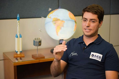 Estagiário da Agência Espacial Brasileira (AEB) e aluno do oitavo semestre de engenharia elétrica da Universidade de Brasília (UnB), Pedro se diz muito interessado na área espacial: “desde criança gosto de aviões”.