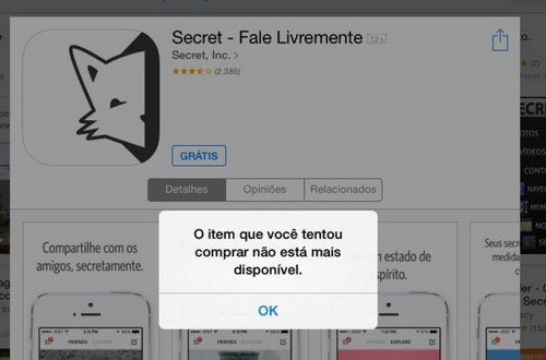 Nesta quinta-feira (21), a Apple retirou da App Store o aplicativo Secret, em que os usários contavam seus segredos anonimamente. A iniciativa acata a decisão da 5ª Vara Cível Pública de Vitória divulgada na última terça-feira, à pedido do Ministério Público do Espírito Santo, que solicitou a retirada do produto.