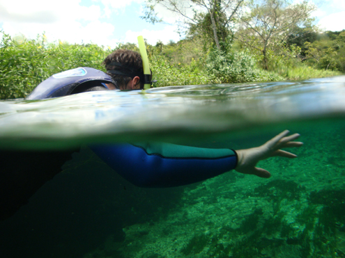 São milhares de peixes, formações rochosas e plantas que só quem faz o mergulho pode observar. Em alguns momentos, onde a profundidade do rio é maior, se tem a sensação de estar levitando. Durante o trajeto, um barco com guia acompanha os aventureiros. A embarcação também serve de socorro para quem não tem fôlego para completar o trajeto flutuando ou sente muito frio (a água do rio é bastante gelada).
