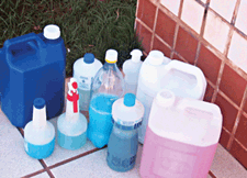 * Saneantes acondicionados em grandes volumes (barris, bombonas ou tonéis) e que são passados para outra embalagem no momento em que se compra