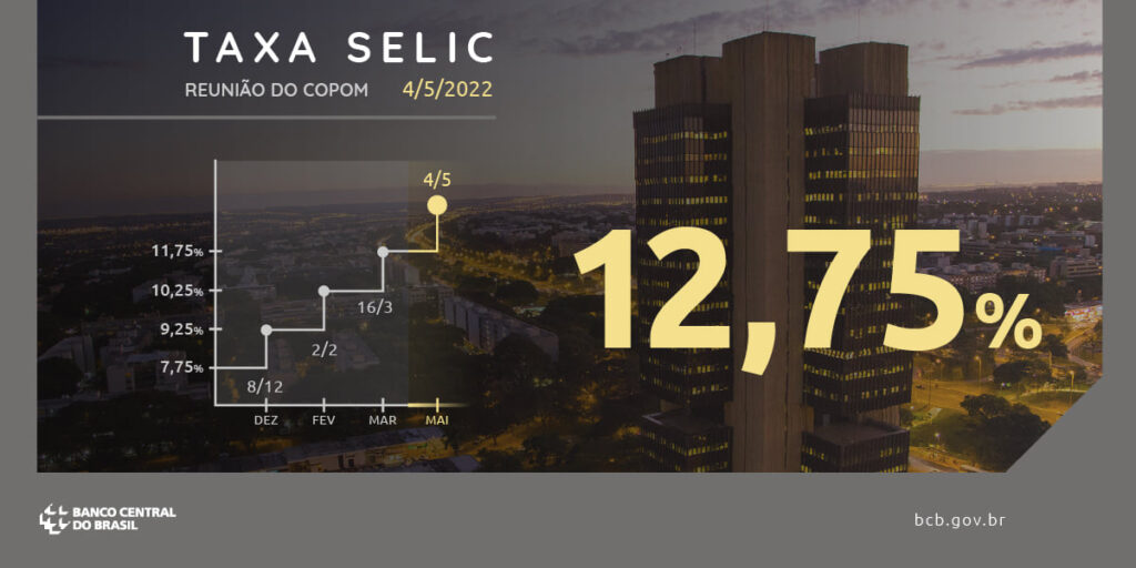 Atualmente o IPCA (índice que mede a inflação do país) está em 1,62% a.m., ou seja, altíssima, a maior dos últimos 29 anos (desde 1993). Para conter esta alta, o COPOM eleva a taxa básica de juros, a taxa Selic, para tentar conter/frear a inflação. O objetivo é que com as taxas altas diminua o consumo e em consequência disso aconteça o movimento de baixa dos preços dos produtos, controlando assim a inflação.