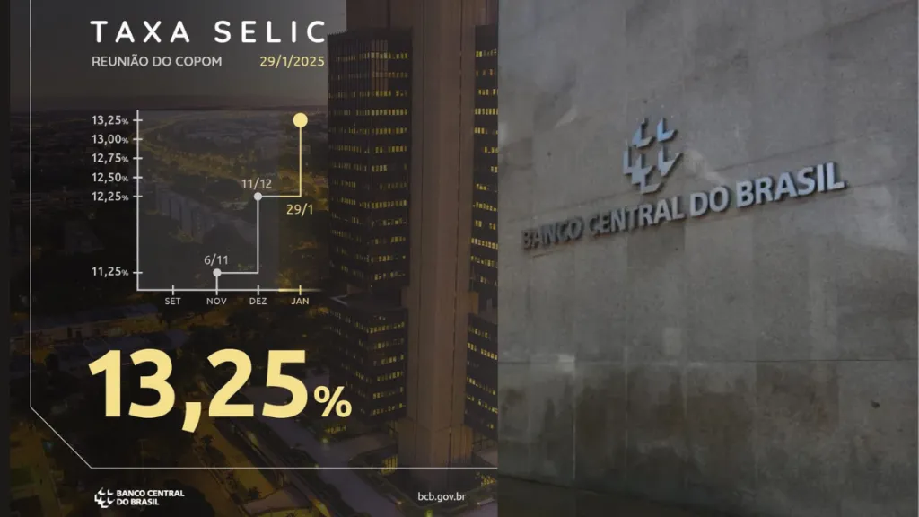 O Comitê de Política Monetária (Copom) do Banco Central decidiu elevar a taxa Selic em 1 ponto percentual, alcançando 13,25% ao ano. Este é o quarto aumento consecutivo, e os especialistas já projetam que a taxa básica de juros pode ultrapassar os 15% até o final do ano.