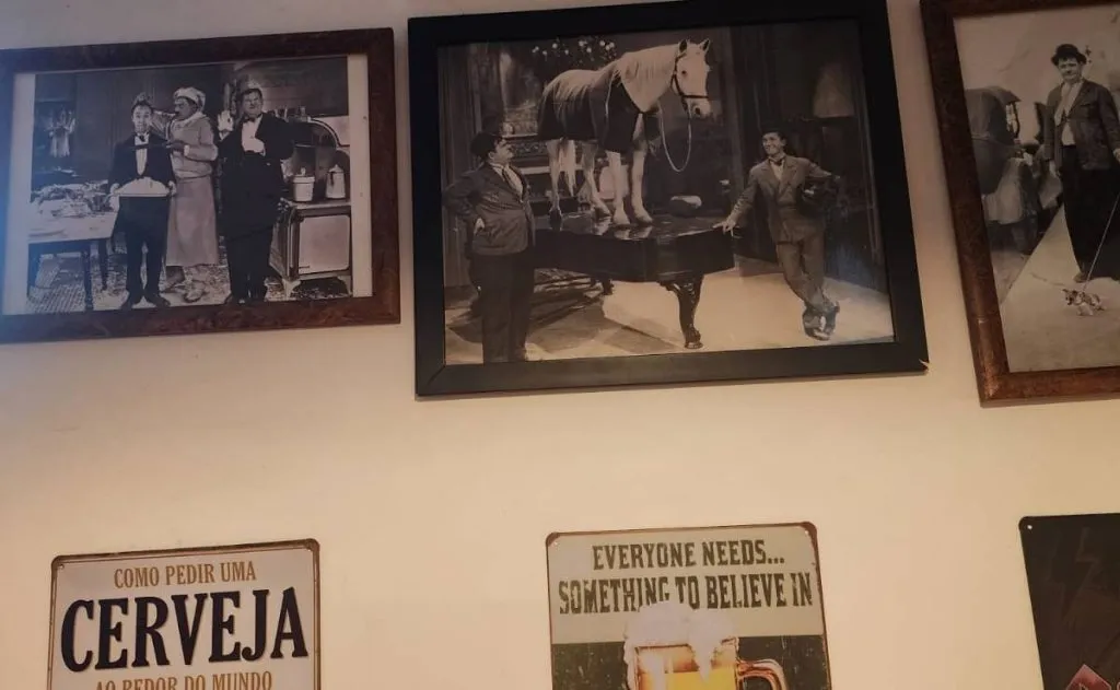 Ao chegar no Gordo & Magro, é impossível não perceber que o bar é genuinamente perfeito para curtir sem pressa de ir embora. A cada olhar, uma história pitoresca que define um boteco raiz. Cadeiras e mesas no lado externo, grades, paredes de várias cores (amarela, vermelha e branca), cartazes de crianças pregados, estufa no balcão, Laurel e Hardy de todas as formas e tamanhos, a ainda com fama de bar talhado para o amor.