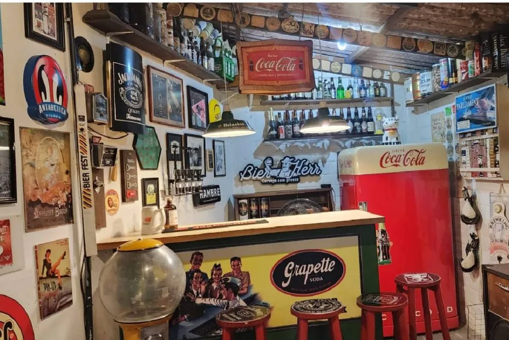Os outros salões internos são um convite ao prazer para quem deseja ficar mais tranquilo. Existe até um canto com balcão, mesa de fliperama, garrafas e latinhas antigas, geladeiras customizadas, sem esquecer o lado country com quadros de artistas.