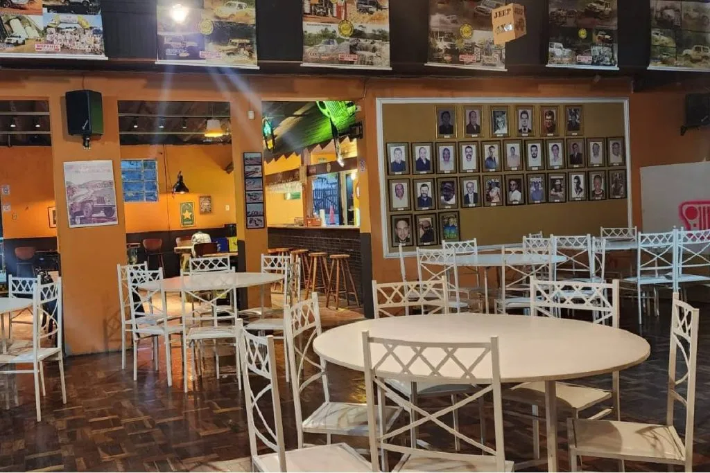 Por estar dentro da sede do Jeep Club, o Botequeiro tem sua decoração voltada ao off-road com quadros, bancos, mesas e até um pódio em um dos salões que ainda tem espaço kids. No balcão do bar, o papo volta e meia é sobre carros antigos ou trilhas, tendo a companhia de pote de rollmops e porções saborosas. Aliás, é difícil apontar o destaque gastronômico, que vai desde a um coração acebolado a famosa carne de onça (nas sextas), sem esquecer do carneiro das quintas-feiras. O que posso afirmar que a comida é espetacular e muito bem apresentada pela equipe do bar que tem a Michele Sabrina Cezario da Silva e a Janaina Rita de Souza.