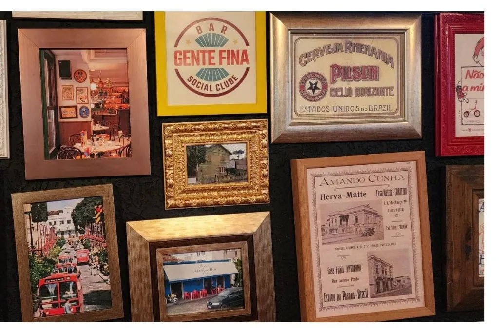 Estar no Gente Fina é resgatar a boemia utilizando a nostalgia e a identidade local. Utiliza-se uma técnica modernista chamada cobogó, uma denominação dada ao elemento vazado, normalmente feito de barro ou cimento, que completa paredes e muros para possibilitar maior ventilação e luminosidade no interior de um imóvel. A iluminação traz um ambiente de aconchego tendo a ótima companhia de colagens de lambe-lambe e quadros da história de Curitiba e do bairro Bacacheri. “É garimpagem e pesquisa. Ali da entrada na parte interna, comprei quadros em um antiquário no Orleans de uma Curitiba antiga, com muito do Bacacheri, o Cindacta, as ruas, a neve. Respeitamos o lugar que estamos, é a cultura mesmo não tendo vivido. Tudo é bem original, é um lugar de Gente Fina”, brincou Ewerton.