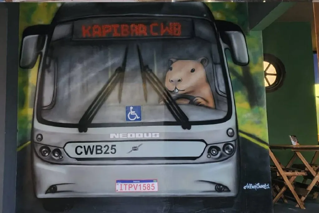 O clima é leve, de risada solta e resenha. O tipo de ambiente em que o tempo passa devagar, como a vida tranquila das capivaras tomando sol no Barigui. Até nos banheiros o bom humor aparece: as plaquinhas “Piá” e “Guria” foram feitas à mão pelos donos, e outra grafitagem enaltece pontos turísticos da cidade com a presença do simpático animal.