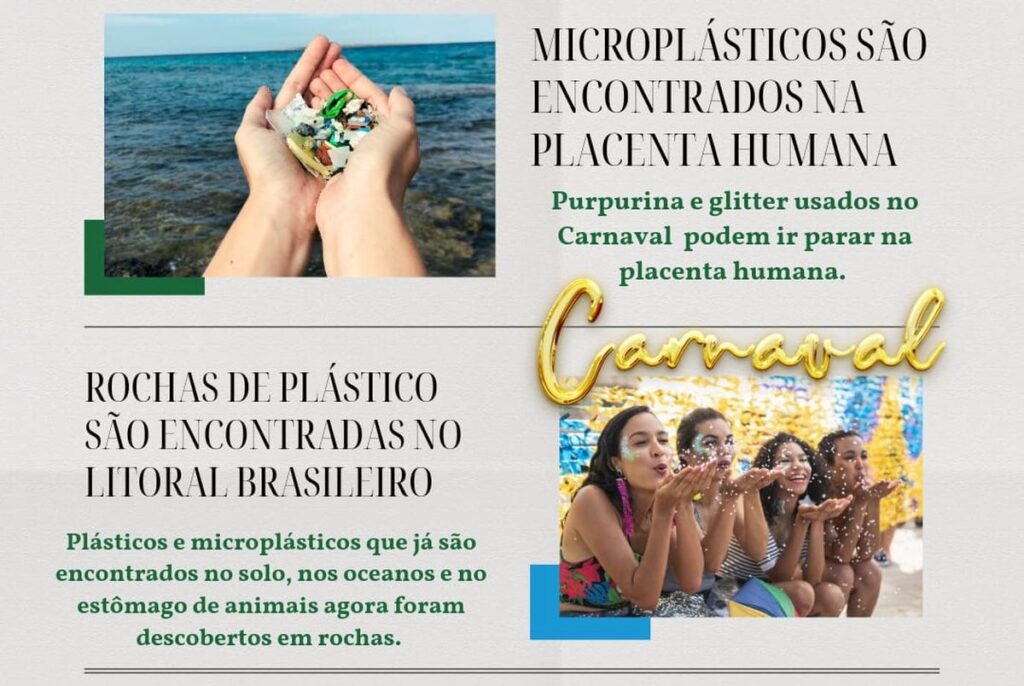Quando lemos que microplástico é encontrado até na placenta humana, porque continuamos a achar normal que usemos em nossas fantasias, adereços e maquiagens um microplástico brilhante? Sim, sinto informar-lhes, mas purpurina e glitter são microplásticos! Aquele material lindo e atraente é um grande vilão para o meio ambiente.