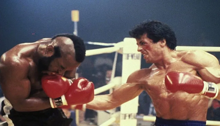 Rocky 3 e Rocky 4 (1982 e 1985) – A história é basicamente a mesma, por isso é mais fácil colocar os dois filmes juntos. Após uma luta desastrosa na qual seu melhor amigo morre, Rocky decide se afastar de tudo e de todos para recuperar seu espírito, o seu mojo, o famoso zóio de tigre. Após uma conversa com sua esposa, temos a montagem de treinamento com aquela musiquinha legal e Rocky vence a luta quando ninguém mais acreditava nele. Básico. A saga de Rocky até parou no cinema, mas o filho do Apollo, o pequeno Creed, vem fazendo bonito nas telonas.