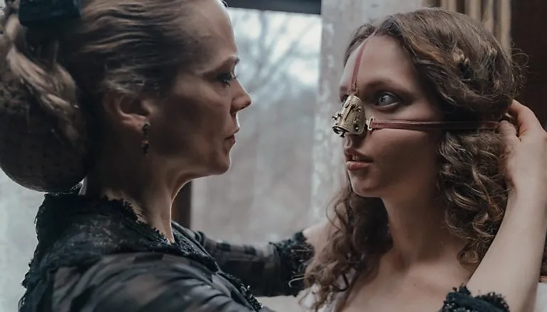 O filme também evidencia que a opressão estética não vem apenas dos homens. O sistema aqui é sustentado por mulheres que perpetuam essas exigências, de professoras de balé a tutoras de etiqueta, todas treinando meninas para agradar e servir. Elvira é moldada como um produto, lapidada para ser desejada, enquanto sua humanidade vai se perdendo. A cena em que Rebekka decide não enterrar o marido morto para investir nas cirurgias da filha sintetiza toda a decadência moral que o filme quer denunciar.