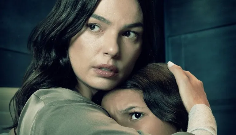 Aqui, Isis Valverde vive uma mulher que perdeu o marido em um assalto e decide se mudar com a filha pré-adolescente, interpretada por Marianna Santos, para uma mansão enorme equipada com um quarto do pânico. A escolha de uma casa tão gigante não faz muito sentido, mas o roteiro não perde tempo tentando justificar. Como manda o manual clássico do suspense, a invasão acontece logo na primeira noite.