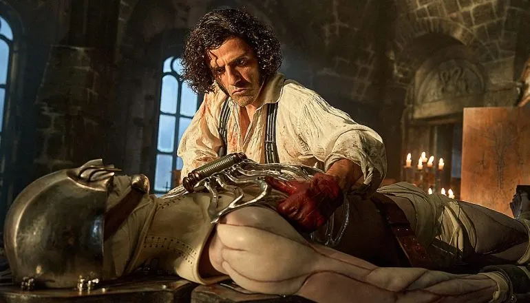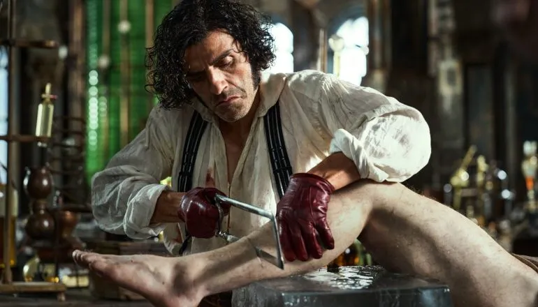 Victor Frankenstein, vivido por Oscar Isaac, é apresentado como um jovem que nunca superou a morte da mãe e cresceu sob o peso da frieza paterna. O pai, interpretado com imponência ameaçadora por Charles Dance, é um homem incapaz de demonstrar afeto, interessado apenas em moldar o filho, por meio do abuso psicológico, para a medicina e a perfeição. É dessa relação despedaçada que nasce o cientista obcecado em desafiar a morte – um homem que, em sua tentativa de domar a natureza, repete o mesmo ciclo de abandono que o destruiu.