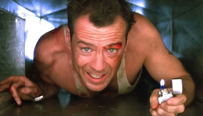 O policial John MacLane é cria direta de Rambo e de Indiana Jones. Do primeiro ele puxou a facilidade de, sozinho, eliminar todos os bad guys que cruzam seu caminho. Do segundo, puxou o bom humor a incredulidade de estar naquele tipo de situação. Dirigido pelo experiente John Mctiernan, Duro de Matar é memorável pelo design de produção, responsável pelo edifício Nakatomi e por contar com um vilão perfeito, Hans Gruber, interpretado pelo até então desconhecido Alan Rickman, liderando um grupo de uber models alemães do crime. Filmaço.
