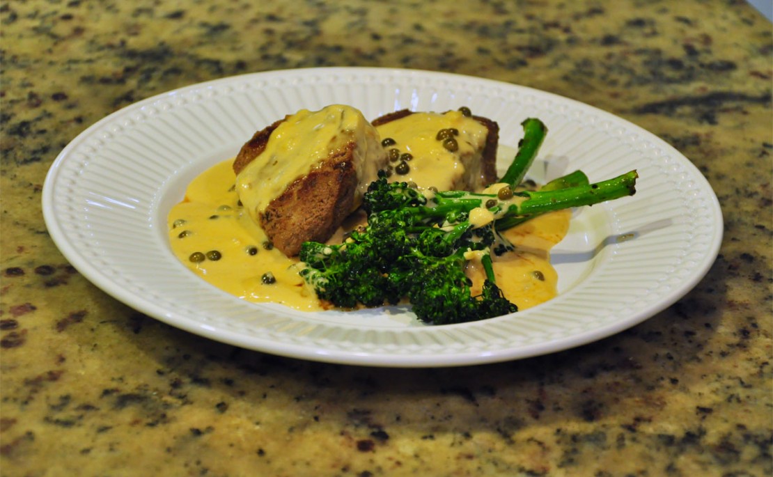 Servidos? No Prato – Coloque dois medalhões de Filet Mignon no centro do prato, coloque ao lado alguns ramos de Brócolis e regue com o molho juntamente com as pimentas.