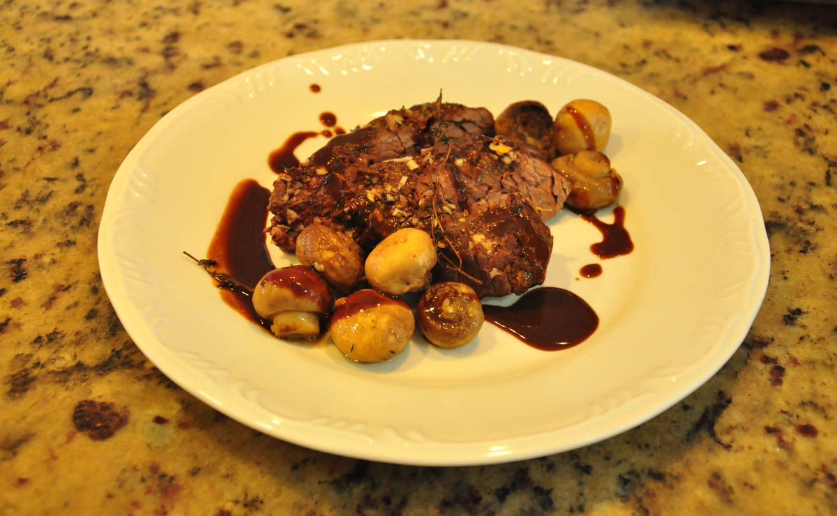 Maminha recheada ao forno com Molho de Champignon