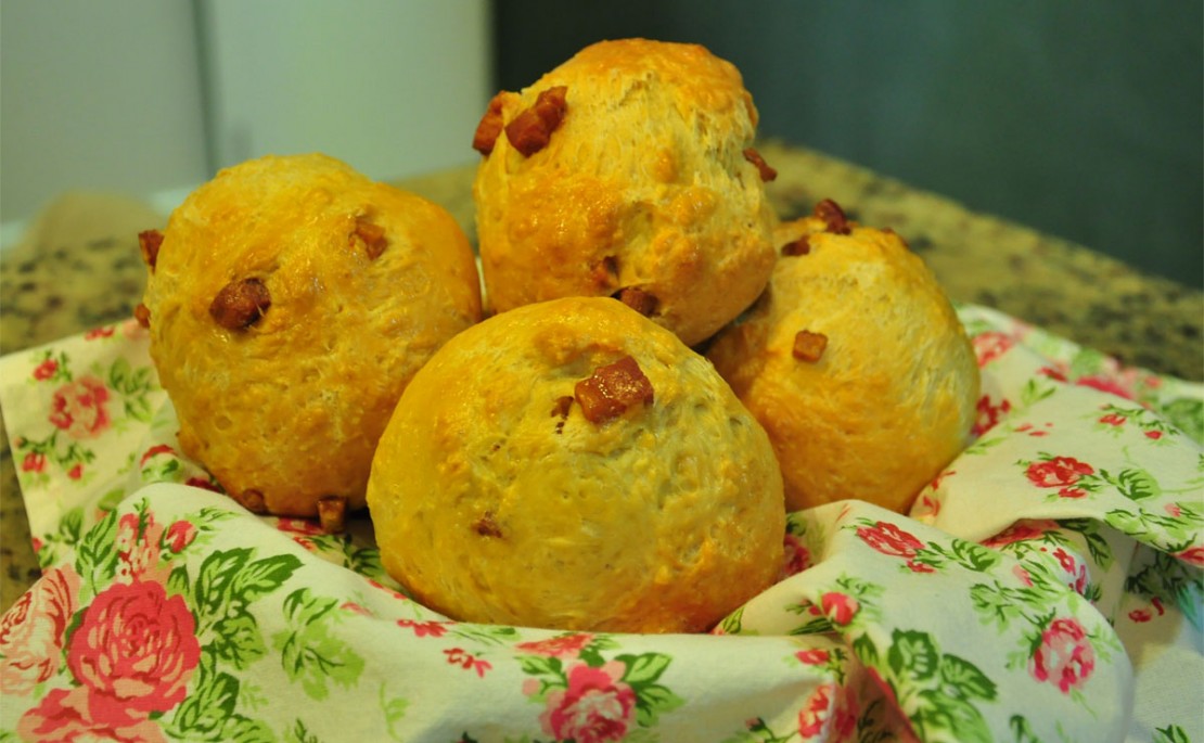 Nossa receita desta semana apresenta um delicioso pãozinho de bacon que certamente irá deixar você com água na boca. Uma massa muito leve feita com ovos e pedaços de bacon crocantes e cheios de sabor.