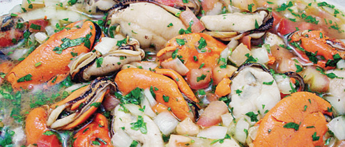 – Para abrir os mariscos, a maneira mais fácil é botar eles no freezer durante 20 minutos, um pouco mais, dependendo do tamanho deles. Vão ficar frios, mas não congelados. Assim anestesiados, eles não conseguem se agarrar nas conchas. Depois, apoiando o marisco na mão, protegida por um pano, pressione uma faca de ponta arredondada entre as conchas, no ligeiro entalhe perto da extremidade mais pontuda. É aí que o marisco se entrega. Você corta os músculos que prendem as duas conchas. Retira a concha superior na dobradiça, junta um pouco de sal, pimenta, uma espremidela de limão, e desliza a delícia pra dentro da boca.
