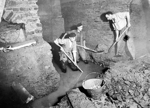 Mas há muito mais que o túmulo de São Pedro nos subterrâneos do Vaticano. A foto, dos anos 1940, mostra uma outra história, de uma escavação iniciada para cumprir a última vontade do Papa Pio XI, que queria ser sepultado o mais próximo possível do túmulo de São Pedro. Não havia lugar e em busca de espaço foram iniciados os trabalhos, que levaram à redescoberta de um cemitério – tanto pagão quanto cristão – quase intacto.
