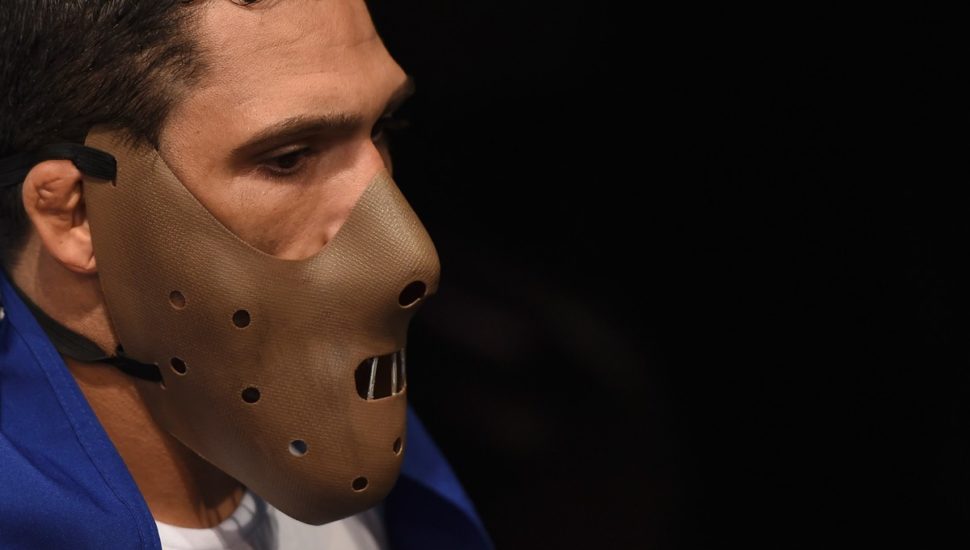 “Meu tio me chamava pra me perturbar. Ele falava que eu parecia um psicopata. Minha mãe ficava ‘de cara’ com isso. Um dia, quando eu já tinha virado lutador de MMA, esse mesmo tio falou pra eu entrar no cage com a máscara do Hannibal. E isso chamou bastante a atenção do público e ficou”, relembrou o atleta.