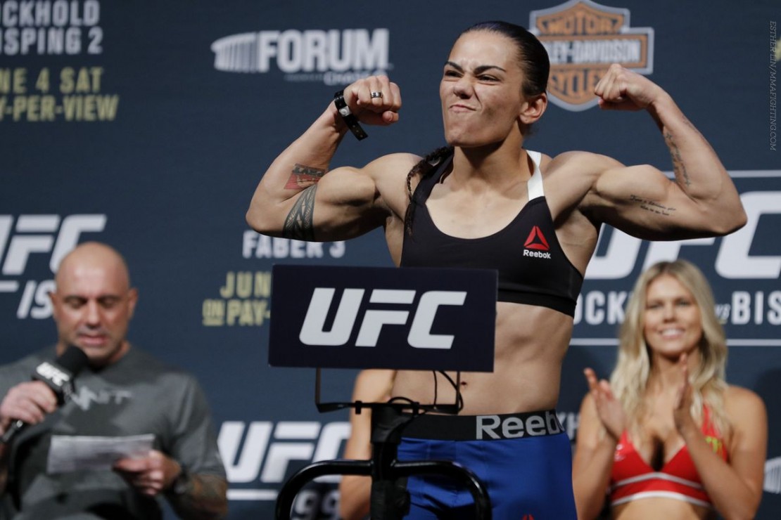 Tecia Torres, 28 anos, também tem experiência no MMA. Em dez lutas disputadas, a americana só perdeu uma vez. Justamente para a atual campeã, Rose Namajunas, em um confronto que terminou na decisão dos árbitros laterais. De resto, a “Tiny Tornado”, ou “Pequeno Tornado”, venceu nove combates. “A Tecia é uma grande lutadora, vem de três vitórias consecutivas, está em ascensão na categoria, vem crescendo muito, é realmente um prazer lutar com ela. Vejo que é uma lutadora completa e será uma grande luta. Creio que na trocação eu leve um pouco mais de vantagem pela minha força e envergadura, mas o show será garantido”, frisou a brasileira.