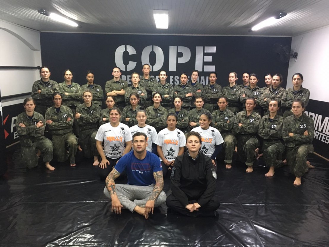 As duas últimas, que vestem a camisa da equipe CM System, da capital paranaense, são as principais estrelas do mundo da luta a comandarem um curso de operações especiais do COPE (Centro de Operações Policiais Especiais) da Polícia Civil do Paraná.