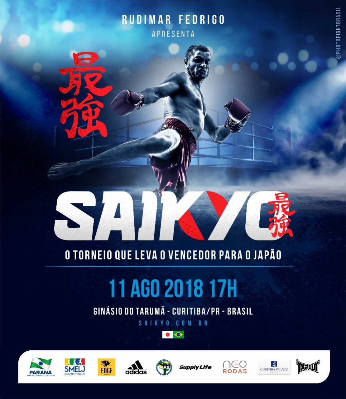 No dia 11 de agosto o Brasil vai conhecer o melhor atleta de Kickboxing do país e nosso mais novo representante da modalidade no Japão. Está chegando a Curitiba o Saikyo, um evento que tem a produção de Rudimar Fedrigo, empresário que criou a Academia Chute Boxe e a transformou numa das maiores equipes de lutas do planeta.