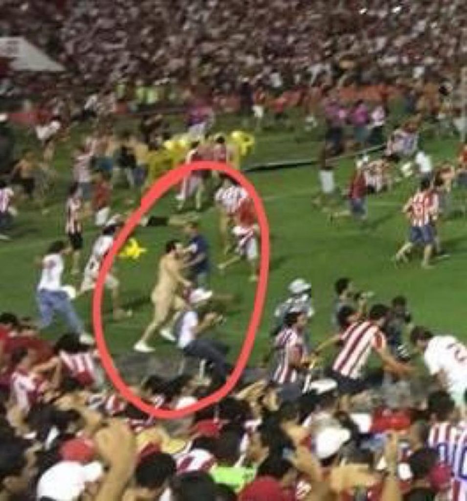 A imagem viralizou pelas redes sociais com a galera zoando o torcedor. Porém, o cara invadiu o gramado com uma bermuda bege na cor do tom de sua pele. Enganou geral!