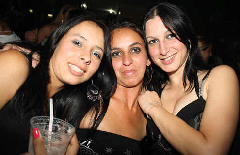 | Marina Prestes, Yohana Andressa e Andressa Niepesuy agitando na festa eletrônica dos DJs do Sistema X. |