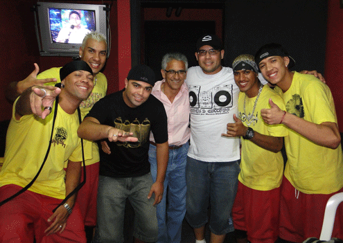 O grupo “Bonde Tesão”, de Brasília, com o empresário Altair (Taíco Preto) Rodrigues e o DJ Marcelo Stoinski, na festa eletrônica da Danceteria Apotheose, no click de Jennifer Lima.