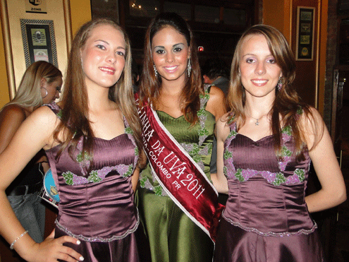 Jessiany Borges (Rainha da Uva), ladeada das princesas Débora Melani e Renata estarão presentes hoje no encerramento da “48ª Festa da Uva de Colombo”, que acontece no Parque Municipal da cidade. O evento conta com shows, feira de exposição e comercialização de produtos típicos como uva e vinho.