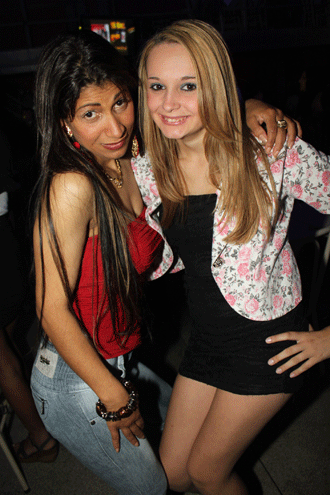 | Adriana Fabíula e Andréia Alves circulando no concorrido no pagodão da Chopperia É Gool!, em Colombo. |